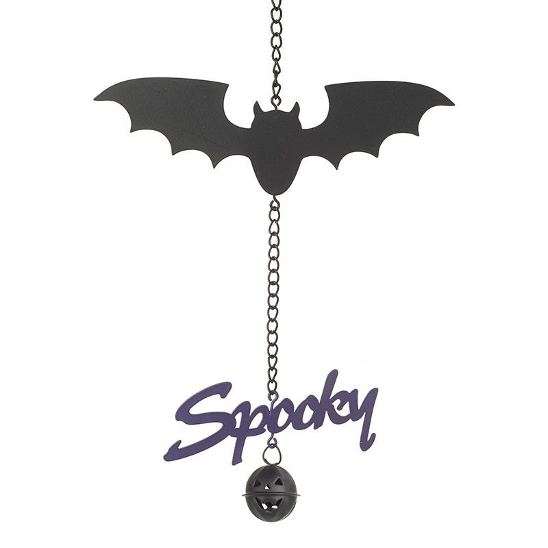 This metal hanging ornament features a bat silhouette with outstretched wings, adding an eerie yet stylish touch to your decorations.