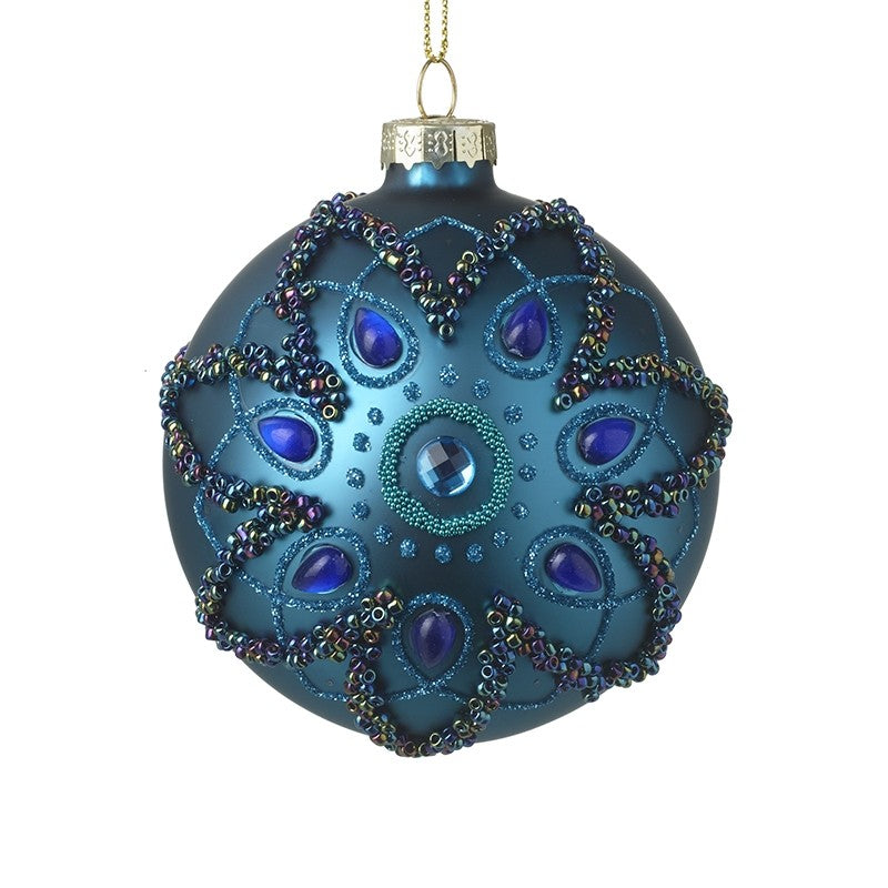 Meticulously crafted, it features a striking blue gem-like embellishments and beads in a star shape and turquoise glitter and beads..