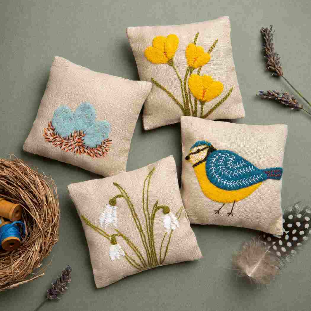 Corinne Lapierre Linen Lavender Bag Embroidery kit - Spring Garden
