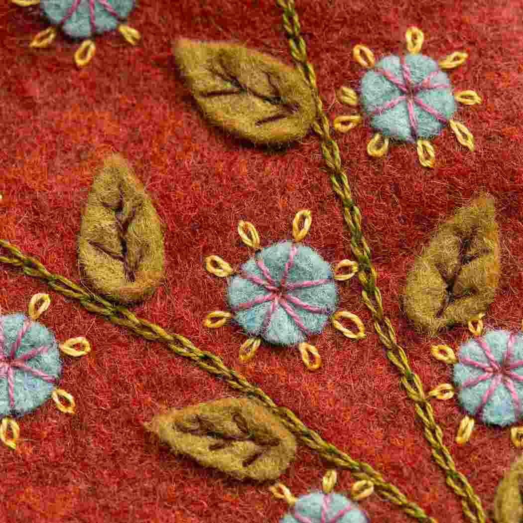 Everything you need to complete this practical and beautiful embroidered scissors pouch and cute mini pincushion is in the box, including high quality super soft wool mix felt as well as 12 carefully chosen assorted DMC threads, a needle and toy filling.
