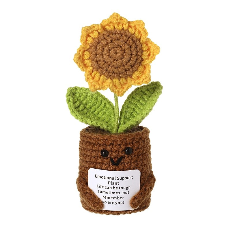 Emotional Support Smiley Crochet Sunflower In Pot