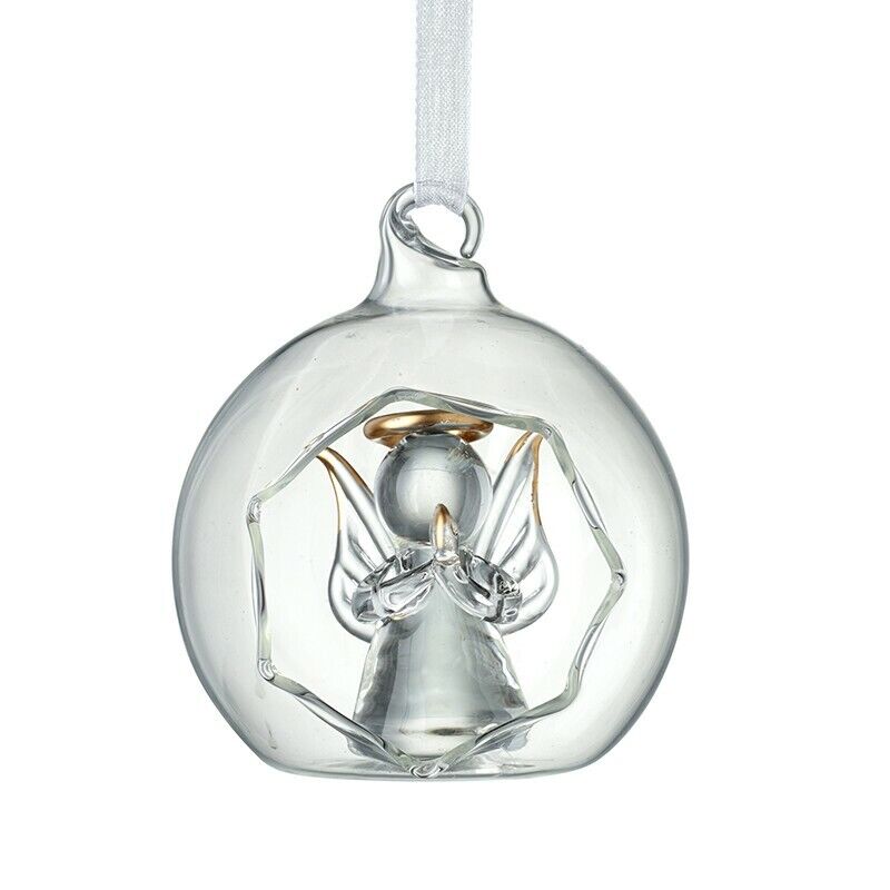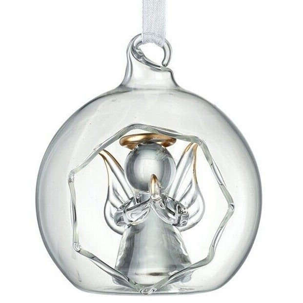 Glass Angel Hexagonal Cut Bauble Christmas Decoration