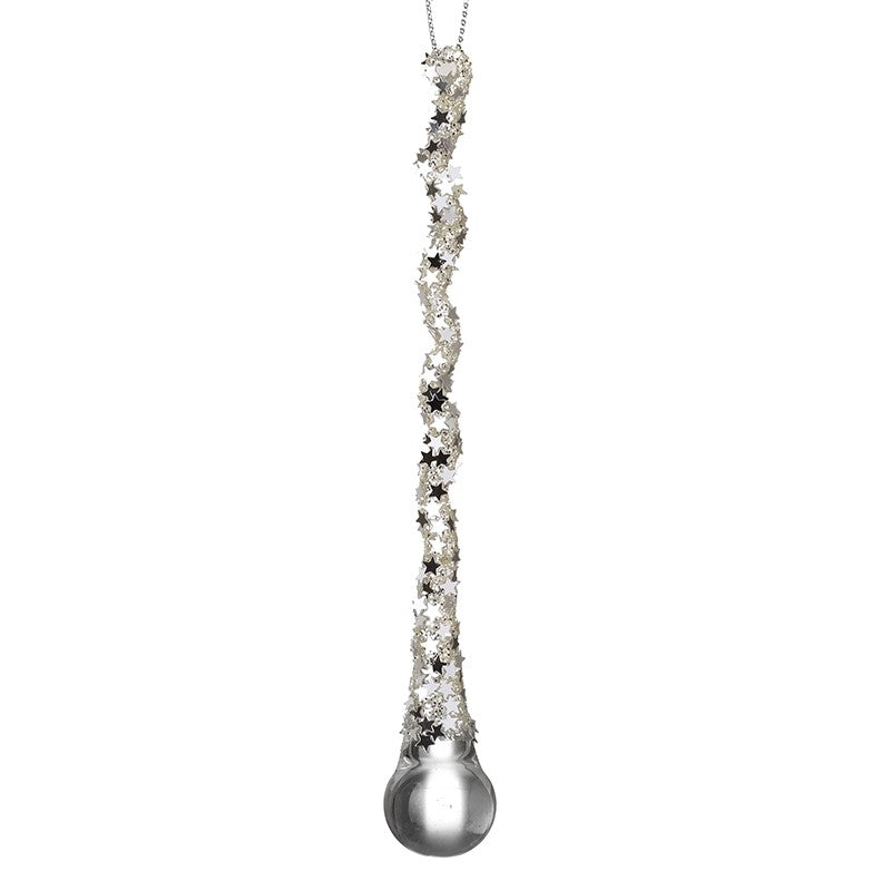 At 15 centimetres long, this refined decoration showcases a graceful cascading design embellished with sparkling star motifs that beautifully catch and reflect light. Made from clear glass, it presents a captivating ice-like effect, complemented by delicate silver-toned accents.